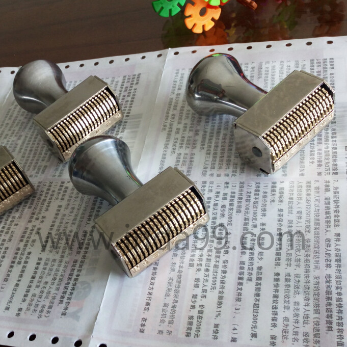 特點:本產(chǎn)品,為全銅材質(zhì)印章材料,手柄為不銹鋼和塑膠二種,經(jīng)多次拋光制