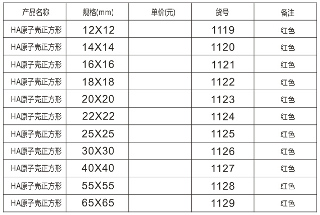 HA原子印章殼規(guī)格如下: